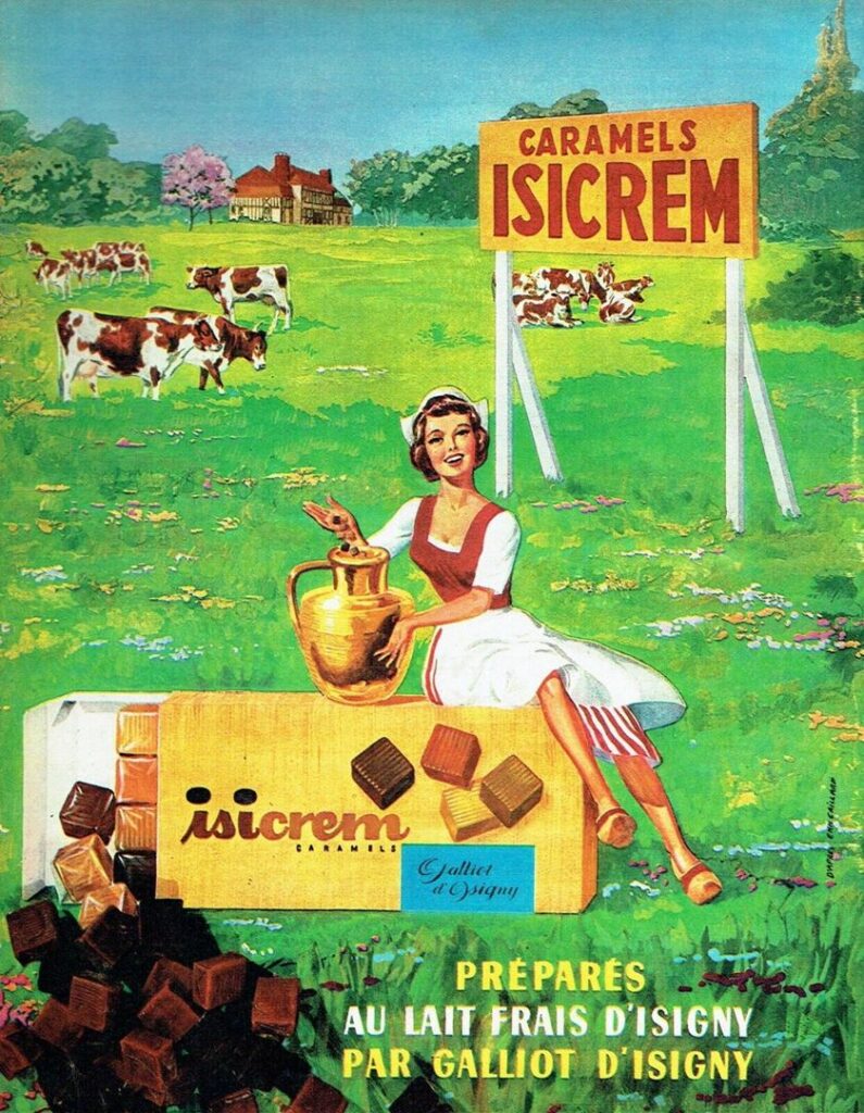 À Lison naît la première recette de caramels au lait frais et à la crème d’Isigny mise au point par les Etablissements Galliot d’Isigny. Beaucoup se souviennent de ces caramels vendus sous la marque “Isicrem”.