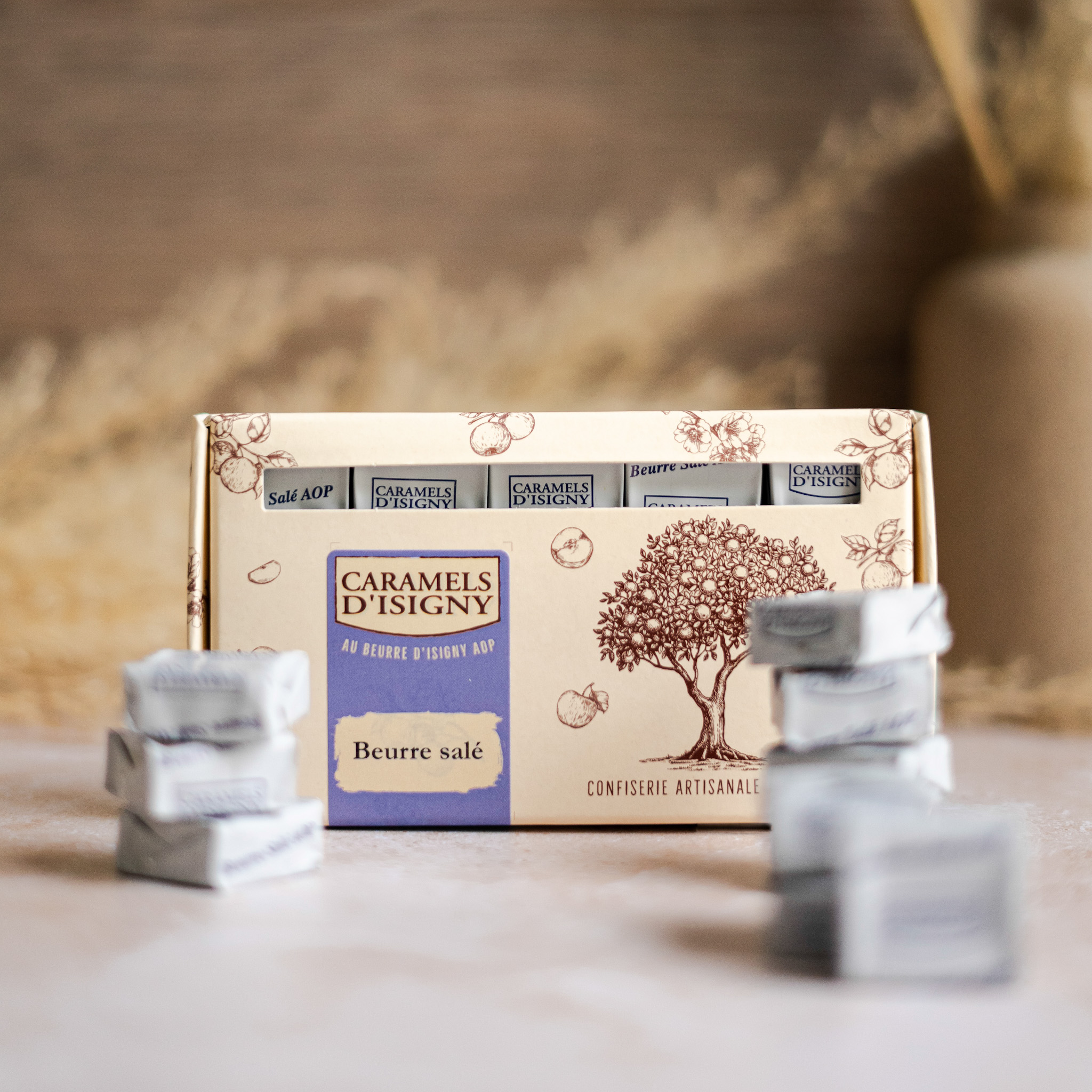 Étui carton 140G – 15 Caramels au Beurre salé d’Isigny A.O.P., le grand favori des adeptes du caramel !