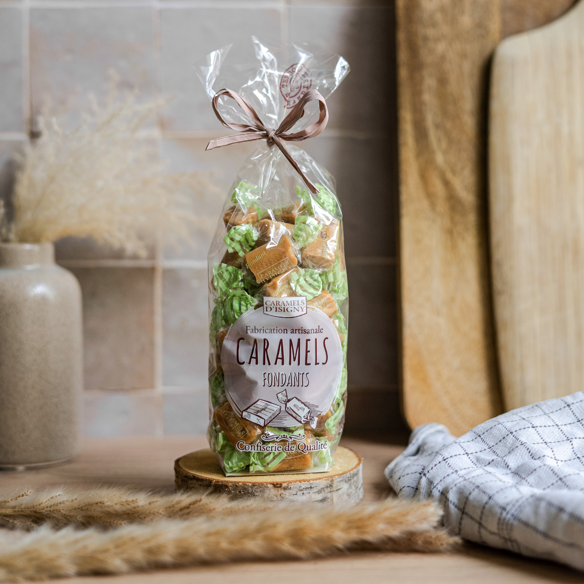 Ingrédients : Sucre, sirop de glucose, LAIT entier en poudre, BEURRE d’Isigny A.O.P., eau, NOISETTES grillées (3,6%), sel de Guérande IGP, poudre à lever : Bicarbonate de sodium, émulsifiant : Sucroesters d’acides gras. Traces : Soja, fruits à coques.